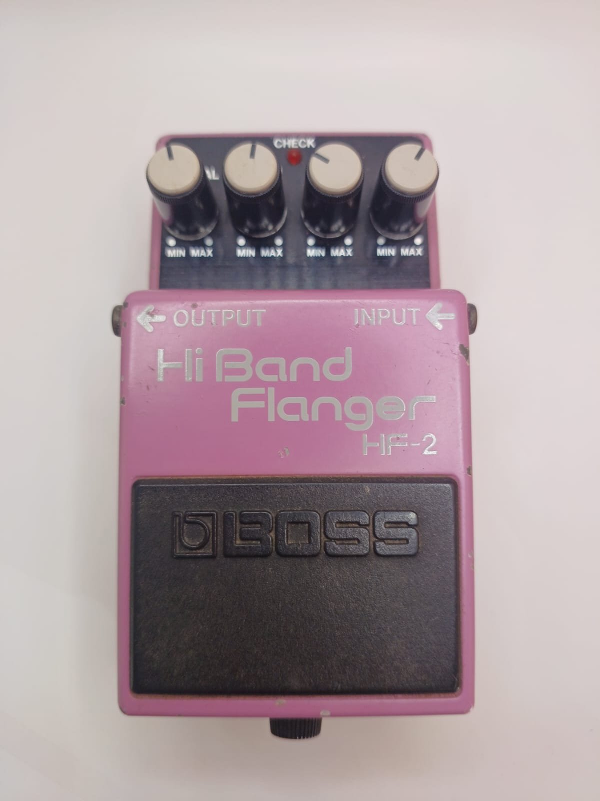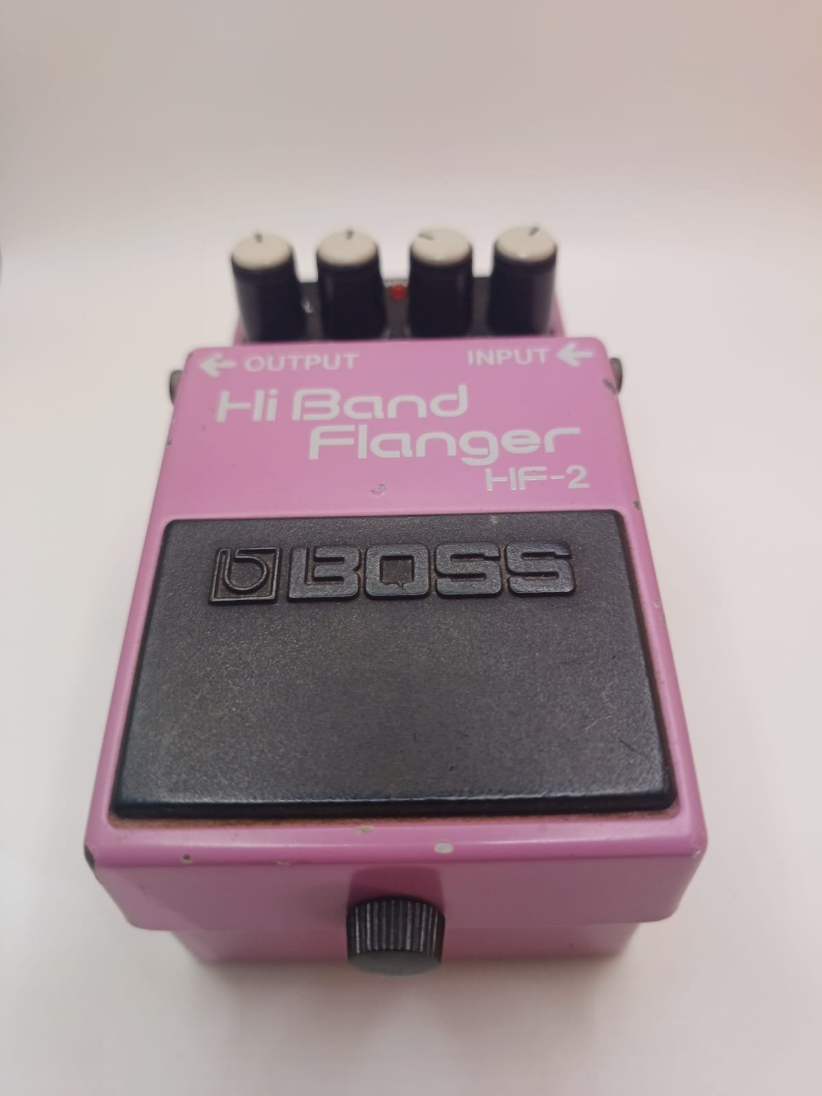 Pedal Boss Hi Band Flanger HF-2 Japan, efeito clássico que realça frequências médias e agudas, criando um flanger brilhante, definido e musical, ideal para guitarristas que buscam timbres vintage com qualidade Boss.