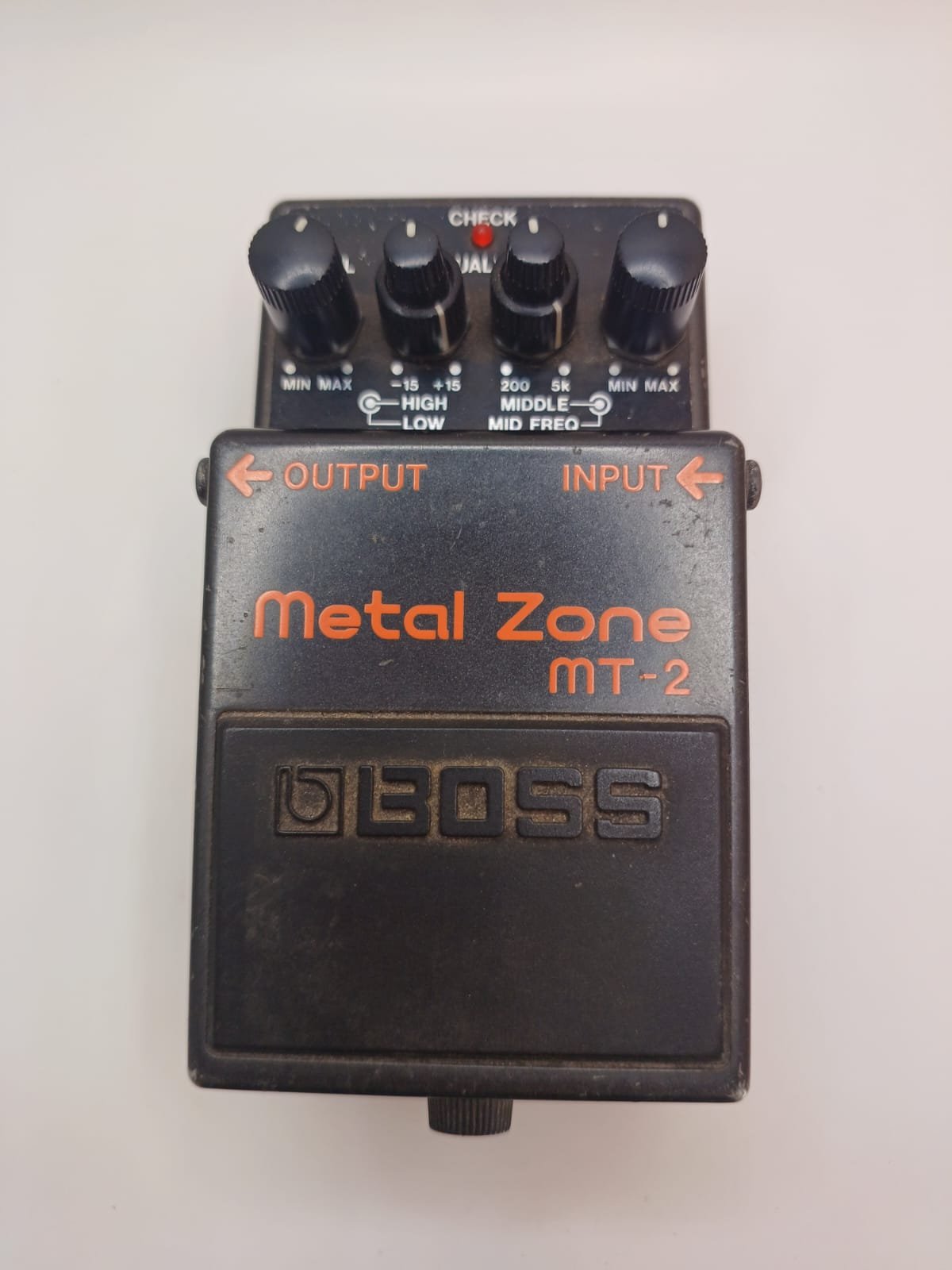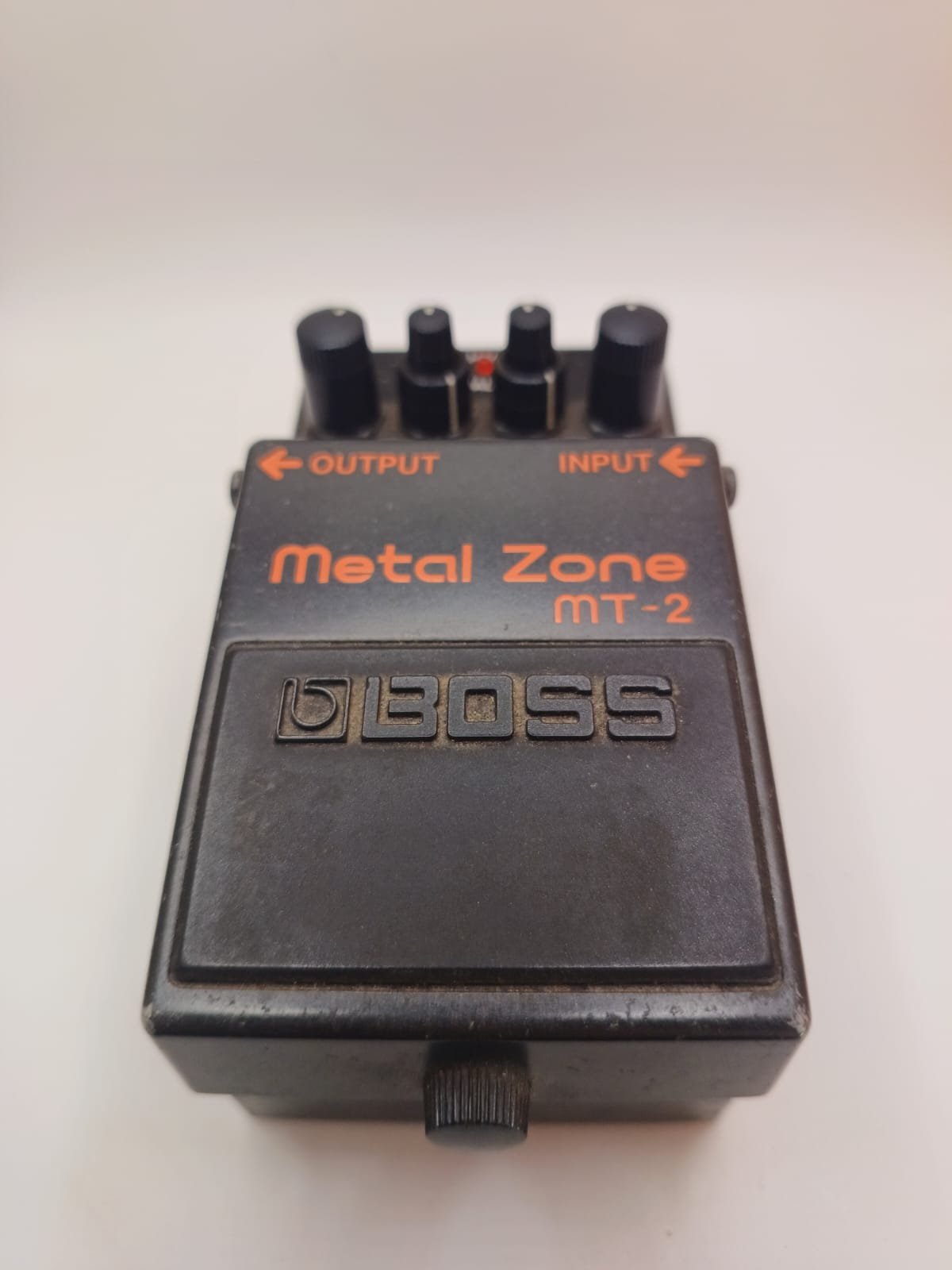 O Boss Metal Zone MT-2, lançado em 1991, é um dos pedais de distorção high-gain mais populares e influentes da BOSS. Seu circuito de ganho de dois estágios proporciona um som pesado e comprimido com sustain suave, ideal para estilos como metal, hard rock e solos encorpados.