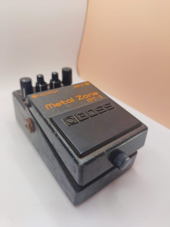 O Boss MT-2 Metal Zone, lançado em 1991 é um pedal de distorção high-gain icônico. Seu circuito de ganho de dois estágios oferece timbres espessos e saturados, com sustain suave, ideais para estilos como metal e hard rock.