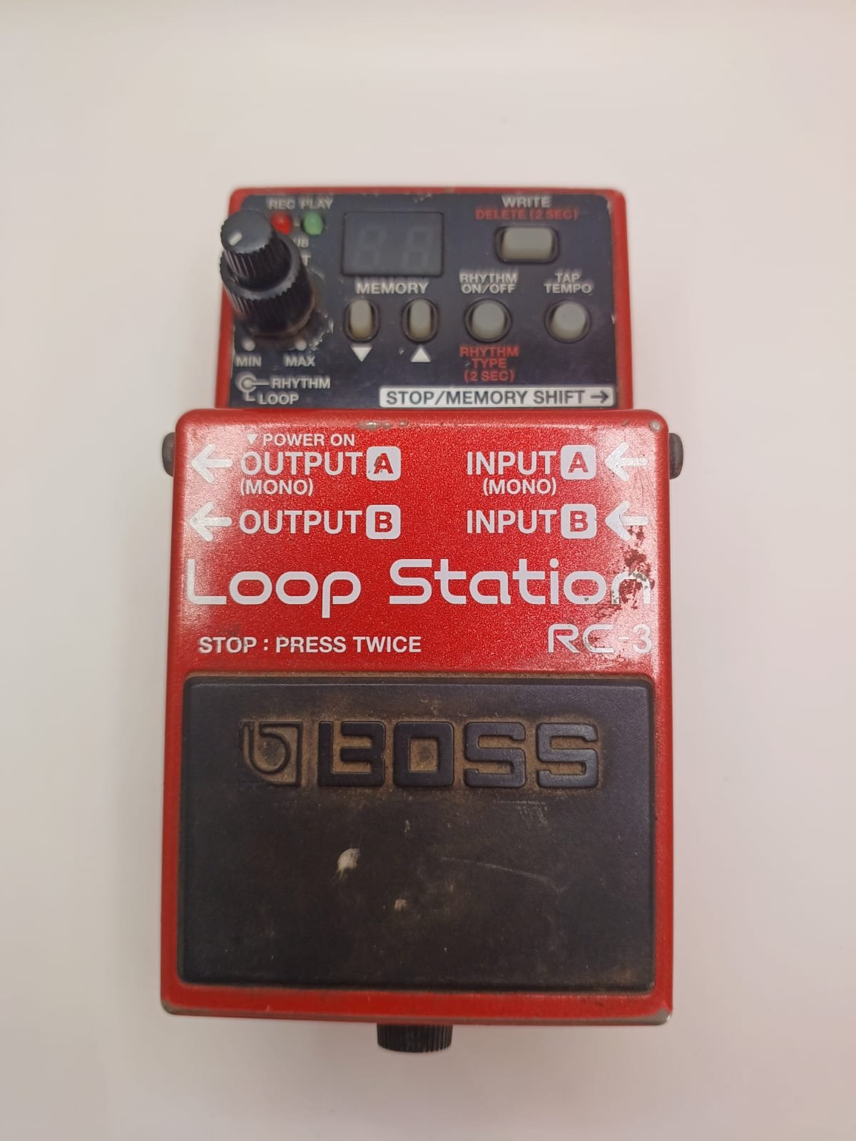 Boss RC-3 Loop Station é um pedal de loop compacto ideal para criar camadas ao vivo ou praticar com precisão. Compatível com guitarra, baixo e outros instrumentos.