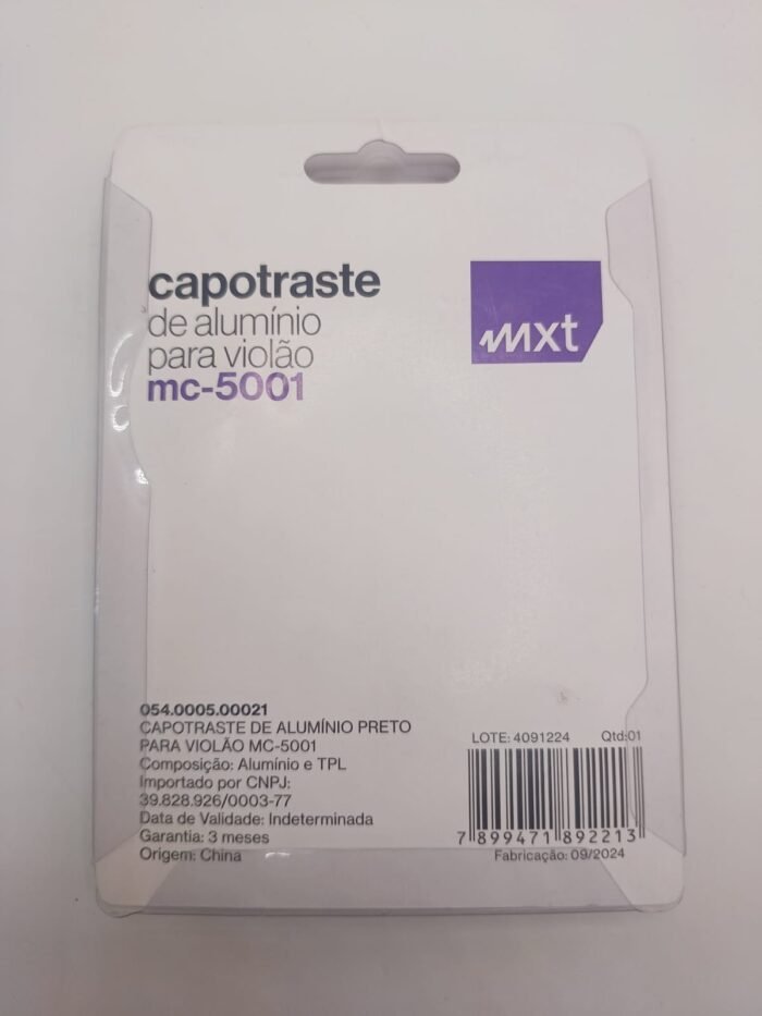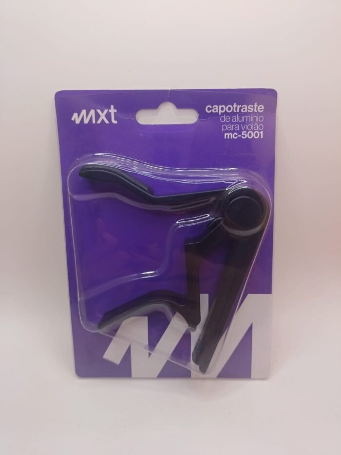 O Capotraste MXT MC-5001 é um acessório prático e resistente para violão, ideal para facilitar a mudança de tons sem precisar alterar a afinação. Fabricado em material leve e durável, possui mecanismo de fácil encaixe e pressão ajustada, garantindo firmeza nas cordas e precisão no som.