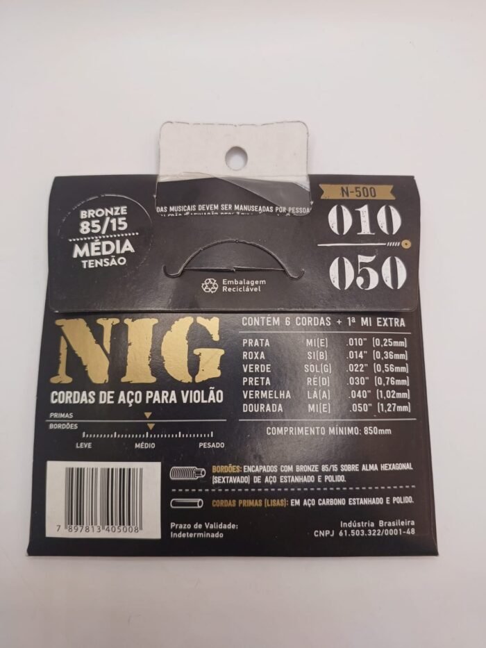 As cordas NIG N-500 Bronze 85/15 foram desenvolvidas especialmente para violões de aço, oferecendo timbre brilhante e definido, ideal para diferentes estilos musicais. Produzidas com alma hexagonal em aço estanhado e polido, proporcionam maior estabilidade de afinação e resistência.