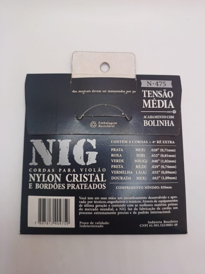 O encordoamento NIG N-475 é desenvolvido especialmente para violão de nylon, trazendo timbre equilibrado, excelente projeção sonora e conforto ao tocar. Produzido com tecnologia de última geração e materiais de alta qualidade, combina primas em nylon cristal com bordões prateados, oferecendo maior brilho, durabilidade e afinação estável.