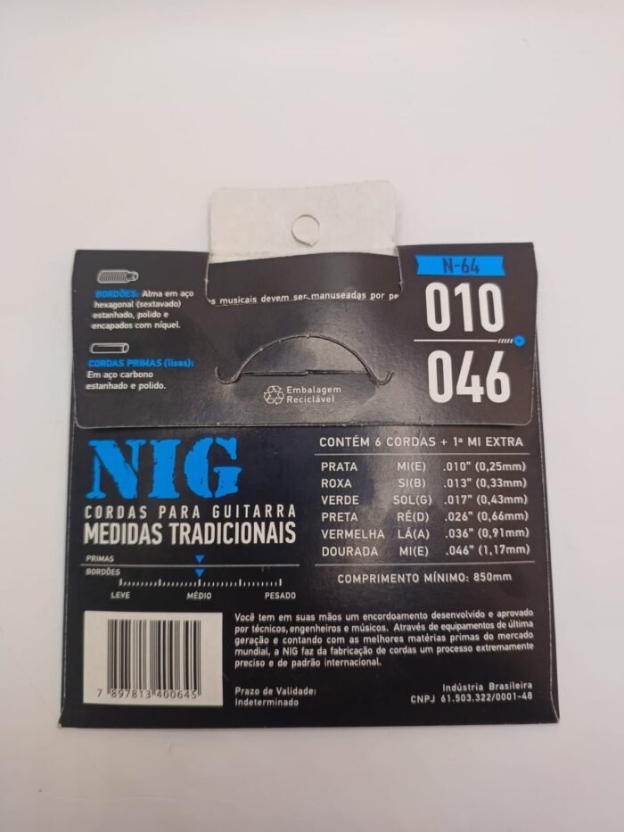 O Encordoamento para Guitarra NIG N-64 é a escolha perfeita para músicos que buscam um som equilibrado, durabilidade e uma tocabilidade confortável. Com a popular medida 010-046, conhecida como “medidas tradicionais”, este conjunto é extremamente versátil e ideal para uma ampla gama de estilos musicais, do rock ao pop e blues.