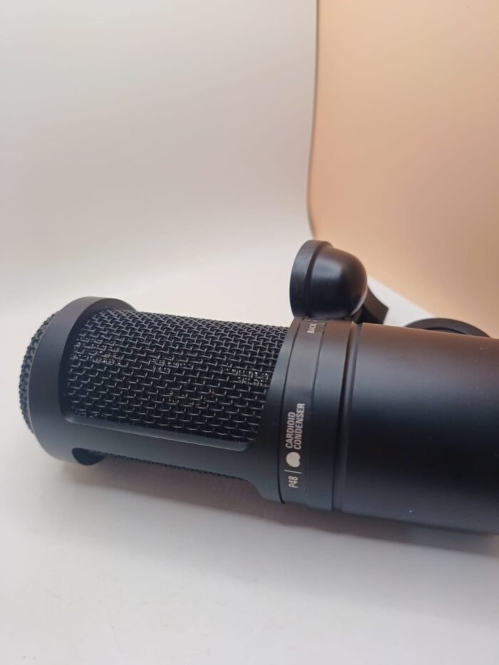 É um microfone condensador profissional, ideal para estúdios domésticos e de projeto.