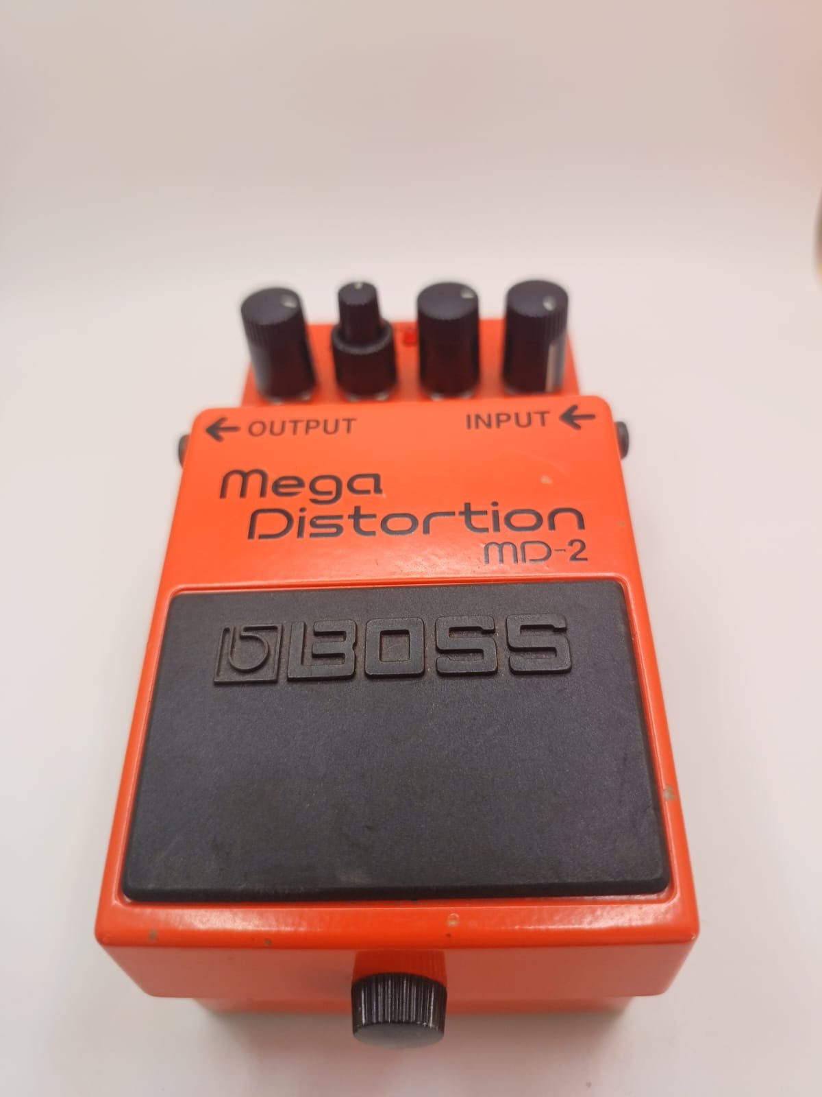 O Boss Mega Distortion MD-2 é um pedal de distorção para guitarra, conhecido por oferecer um som pesado e encorpado, ideal para metal e estilos mais agressivos. Ele combina distorção tradicional com um reforço de graves e ganho extra, proporcionando timbres saturados e cheios. Possui controles de Level, Tone, Distortion e Bottom/Gain Boost, permitindo ajustar desde distorções moderadas até sons extremamente pesados e profundos.